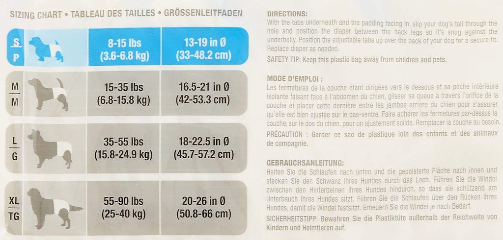 Dogit Diapers - XL - 55-90 lbs and waist 20-26 in - 12 pack