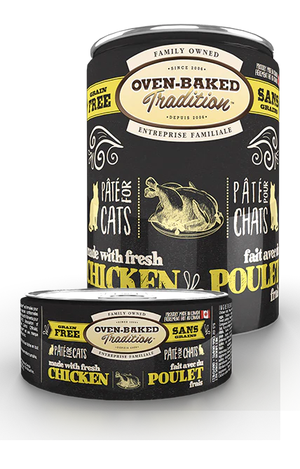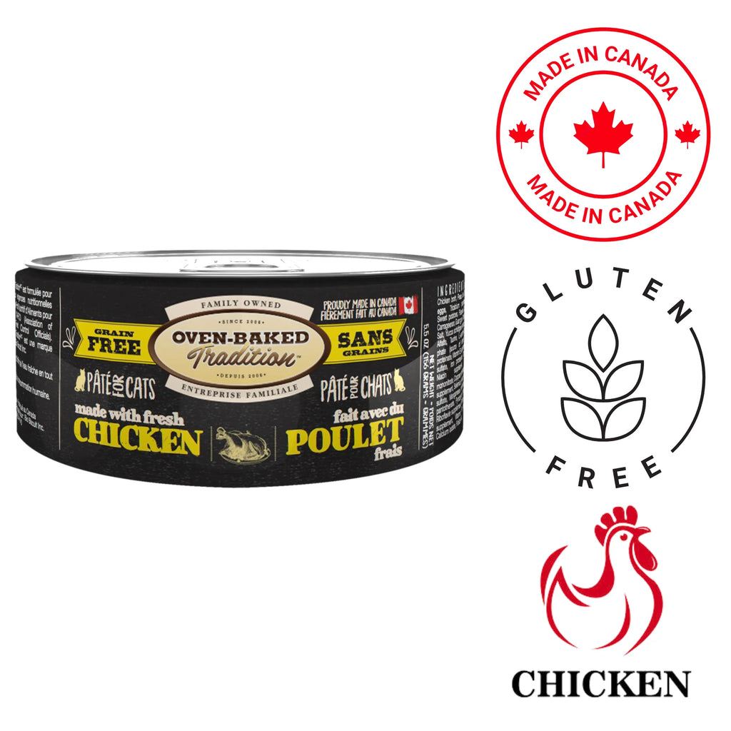 Oven-Baked Tradition Grain-Free Pâté for Adult Cats - Chicken is a nutritious and delectable option for your feline companion. Made with chicken as the primary ingredient, this high-protein pâté supports muscle development and overall well-being. The grain-free formula is ideal for cats with food sensitivities, minimizing the risk of allergies and promoting a balanced diet.