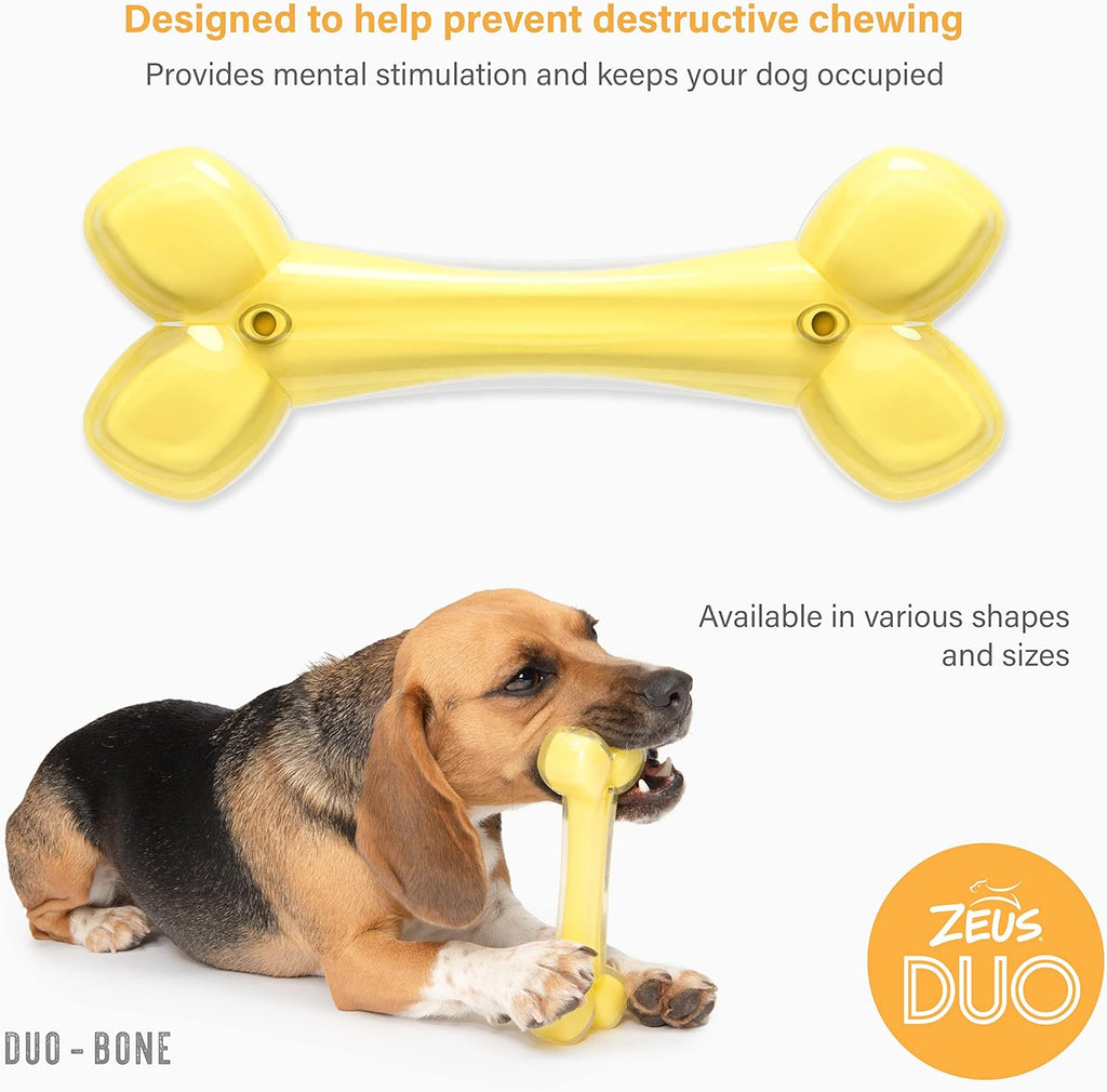 Zeus DUO chew toys are made of a unique duo of durable, non-toxic materials to provide your dog with an optimal chewing experience. The rigid nylon center is scented and enveloped by a soft yet resilient outer layer that your dog will love sinking their teeth into, helping to prevent destructive chewing.