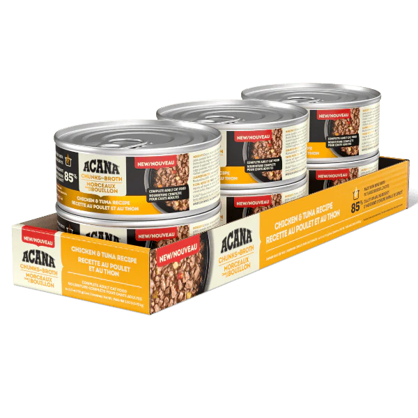ACANA™ CHUNKS IN BROTH CHICKEN & TUNA RECIPE Adult Cat Food is formulated to meet the nutrition levels established by the AAFCO Cat Food Nutrient Profiles for maintenance.
