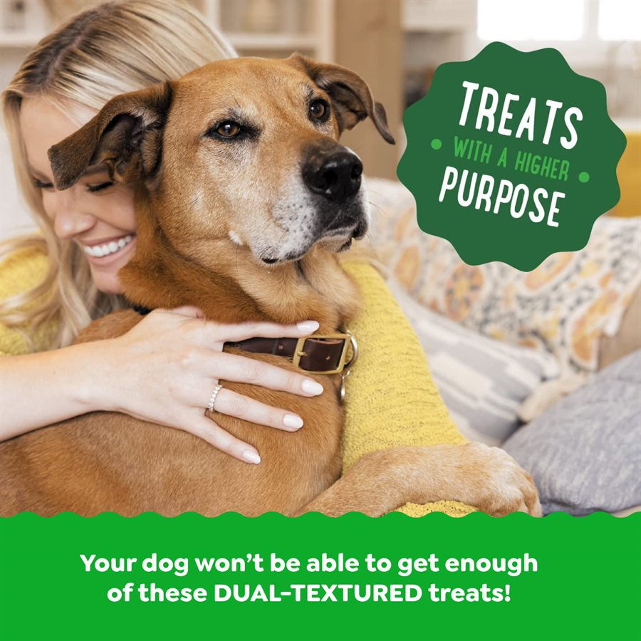We designed GREENIES SMARTBITES dog treats as an irresistible treat for your adult dog that delivers essential health benefits. GREENIES SMARTBITES Immune Support dog treats are formulated with Vitamin E, an antioxidant, to help support a healthy immune system for your dog without taking away from the fun of treat time. These chicken-flavoured crunchy and soft dog treats are made with natural ingredients plus vitamins, minerals, and nutrients that your dog won't be able to get enough. At less than 3 calories per treat, these dual-textured treats are perfect for a daily snack and frequent treating. These treats contain no artificial flavors, artificial preservatives, or fillers (trace amounts may be present due to potential cross-contact during manufacturing) so you can feel good about giving your dog a tasty, snack-sized treat whenever they deserve it. Make treat time a healthier and more exciting experience for your dog with GREENIES SMARTBITES Immune Support Dog Treats!