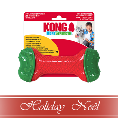 KONG® Holiday CoreStrength™ Bone in bright holiday colors is built to deliver long-lasting chewing satisfaction with a durable KONG-crafted, multi-layered core. The exterior texture prolongs chewing and helps clean teeth and gums between all those holiday treats. Ideal for independent play and interactive fun through the holidays and beyond.