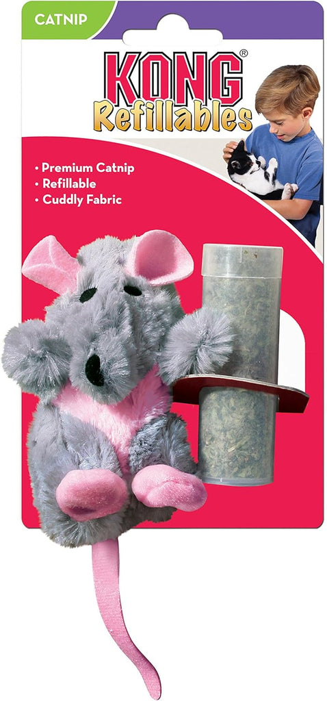 Refillable catnip toy that utilizes top quality, natural North American catnip. KONG refillable catnip toys have a special compartment that can be opened and closed so that fresh catnip can be added again and again.