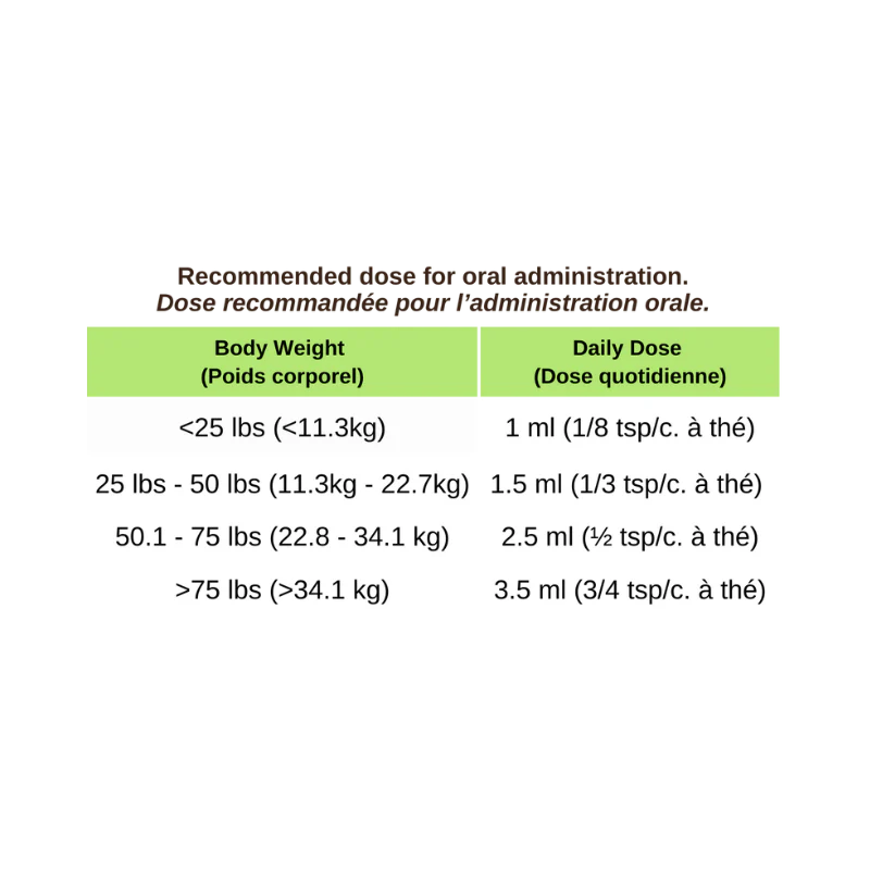 | Weight of Dog lbs | Weight of Dog kgs | Daily Dosage |