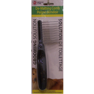 Miracle Coat® When other tools cannot break free mats, choose this dematting comb to get the job done. The dematting comb breaks mats into more manageable sections that you can then comb through. It is important to remove mats as soon as they are discovered. Mats may pull on the skin, and may lead to discomfort, serious skin problems and infection.