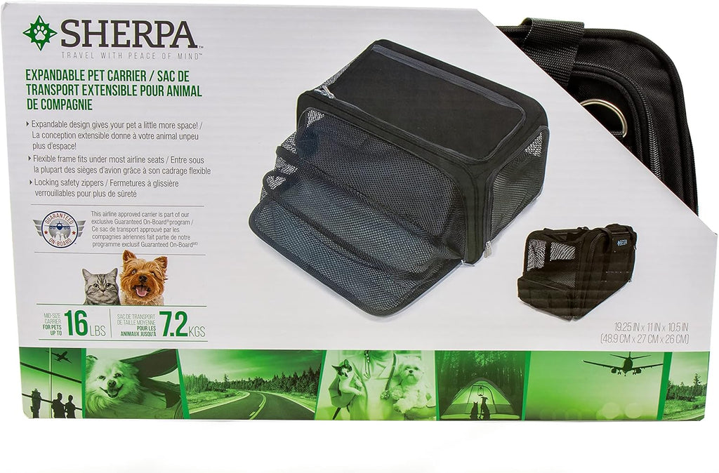 Sherpa™ Expandable Travel Pet Carrier, Airline Approved, Foldable, Black Medium