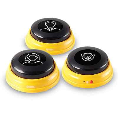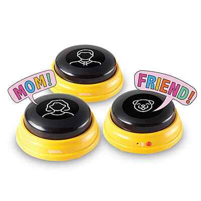 Teach your dog to speak with names just like Stella, the world’s first talking dog! Created by speech therapist and creator of the talking dog movement Christina Hunger, this Hunger for Words Talking Pet Next Words set is designed to make it easier than ever to help your dog learn and use names. With the help of the set’s 3 talking buttons for pets and step-by-step teaching guide (written by Christina herself), you'll learn how to teach your dog the names of the people and animals in their life. Customize your words and voice with recordable buttons—teach "mom," "dad," "friend," and more! Use these talking buttons for pets as the start of your dog’s communication journey, or incorporate them into existing pet speech setups or dog training and obedience games—with the set’s themed stickers, you’ll always know which button is which. Made from durable plastic and powered by AAA batteries (sold separately), these dog supplies are ready for years of communication with your smart pets. And remember: learning takes time! For best results, practice with your dog every day, follow along with the training activities, and have fun together in the process! The only pet communication tools designed by Christina Hunger and approved by Stella, the world’s first talking dog, Hunger For Words' pet communication tools help you teach, track, and support your pet on every stage of their communication journey! Hunger For Words tools feature informative step-by-step guides by the creator of the talking dog movement—written with the belief that every dog deserves a clear way to express their needs, and every dog owner deserves to understand their pet, Christina’s expert tips help bring pets and owners closer together. To learn even more about Hunger for Words and Christina's groundbreaking work, check out the book How Stella Learned to Talk—a New York Times bestseller in 2021!