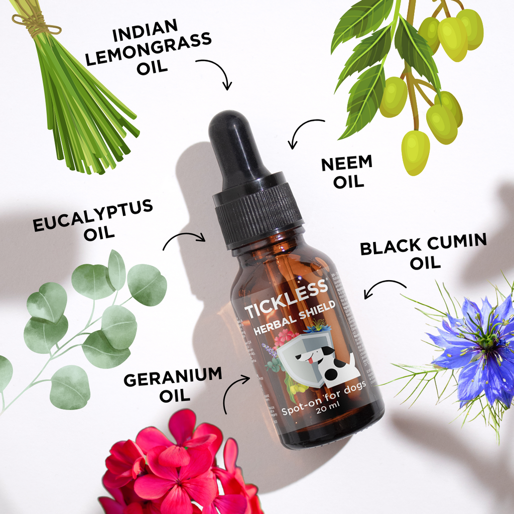 Would you like your dog to enjoy walks, hikes or time in the garden without worries? Tickless® Herbal Shield Spot-On is an environmentally friendly and pet-safe solution that supports a calm, insect-free outdoor experience with a harmonious blend of natural essential oils.