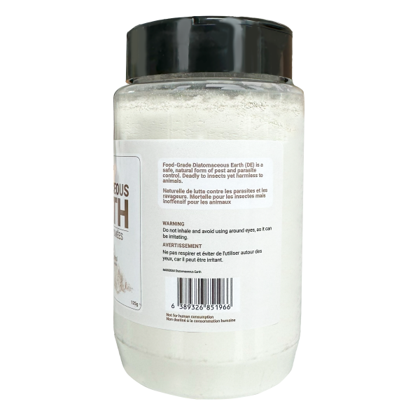Food-Grade Diatomaceous Earth (DE) can be used for pest control and as a nutritional supplement. DE powder consists of crushed microscopic marine fossils. When insects come into contact with DE, their exoskeleton is scratched, which leads to dehydration and death. DE also contains nutritional components and is a source of calcium, magnesium, titanium dioxide, gallium, sodium, and other trace minerals.