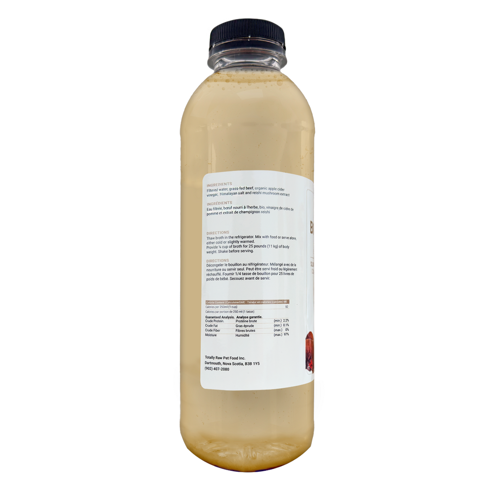 Ingredients: Filtered water, grass-fed beef, organic apple cider vinegar, Reishi mushroom extract.