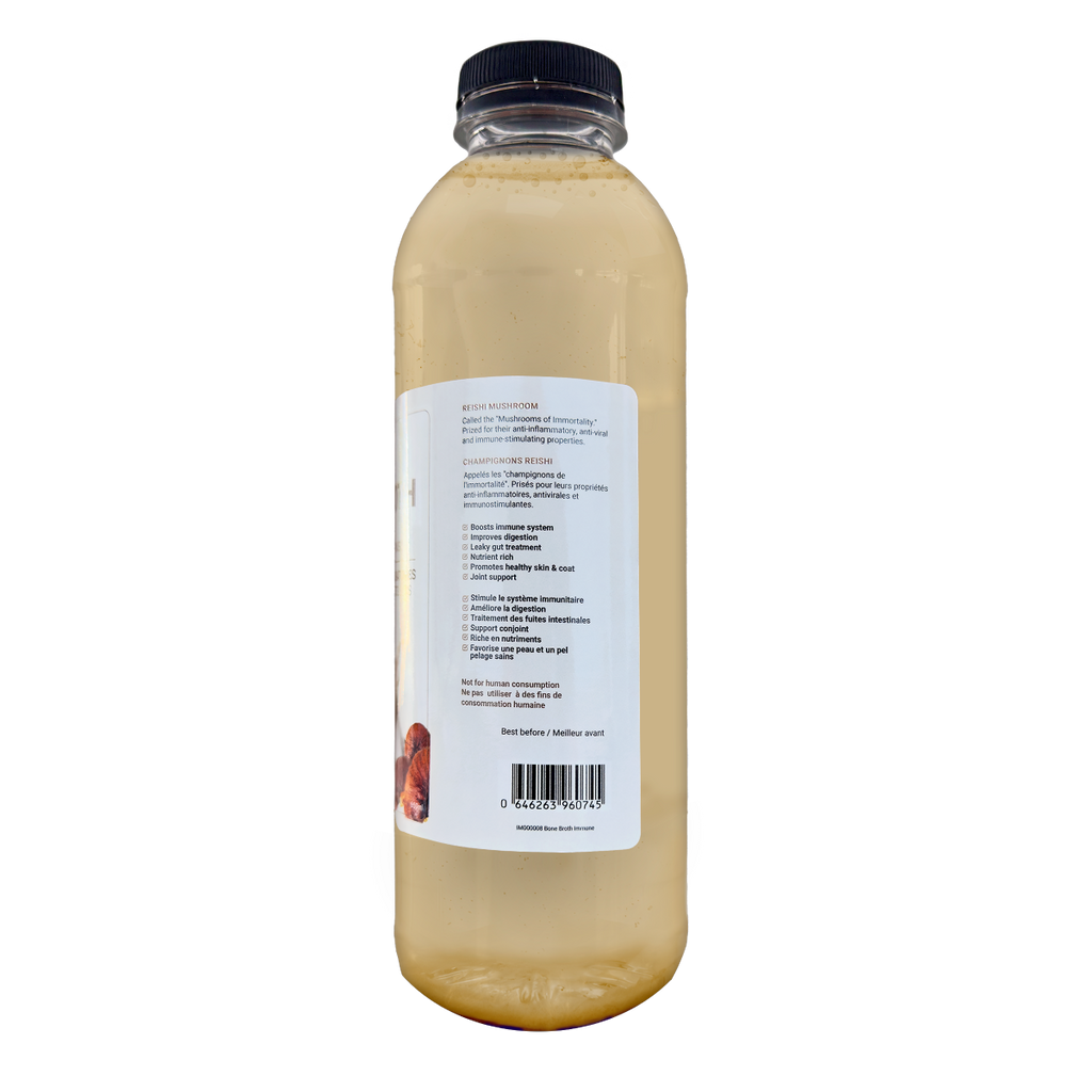 Bone Broth supports liver and kidney function, improves digestion, and boosts the immune system. Reishi mushrooms are prized for their anti-inflammatory, anti-viral and immune-stimulating properties.