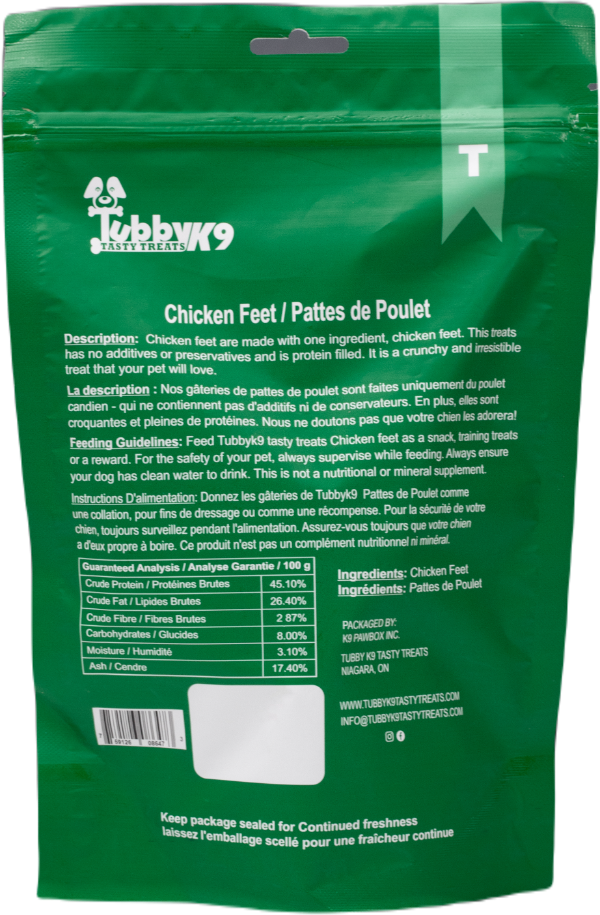 Boasting with flavor, these 100% Chicken Feet treats are irresistible. Chicken feet are fully digestible, including their nails, making it a great snack for your pet.