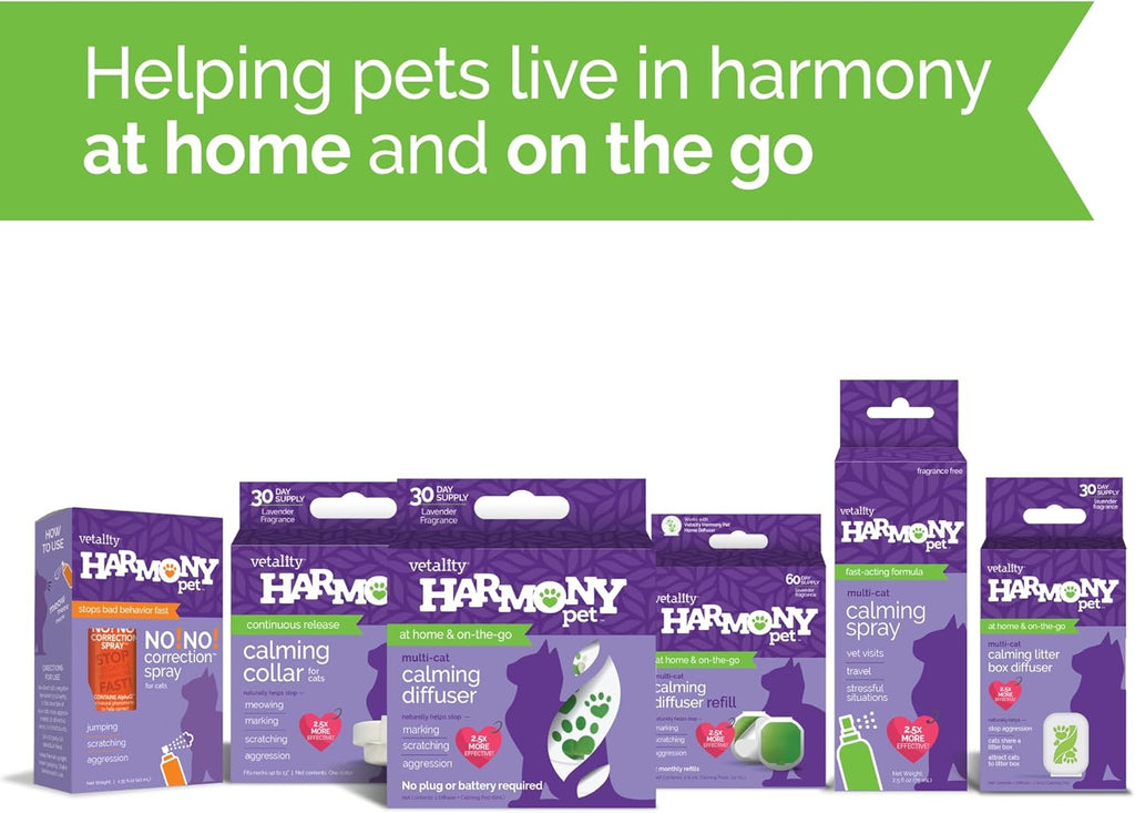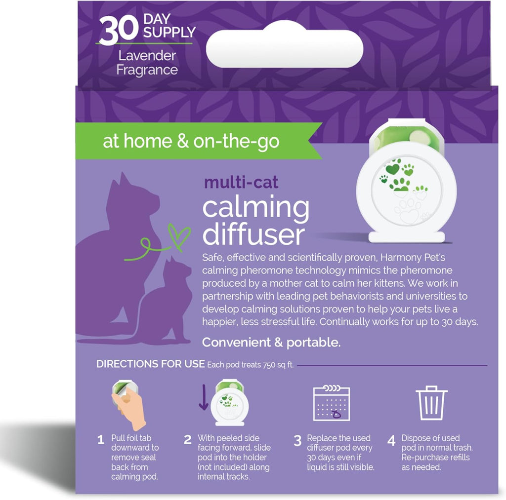 Harmony Pet Home Diffuser for Cats is unplugged and portable. Each diffuser cartridge continually releases a safe pheromone for cats for up to 30 days, providing 1 month of calming benefits when they need it the most. The P.E.T. pheromone mimics the maternal pheromone from momma cat to soothe her kittens. Cats of all ages recognize this calming pheromone for life.