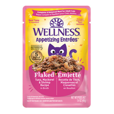Wellness® Appetizing Entrées™ Flaked Tuna, Mackerel & Shrimp in Broth Wet Cat Food 1.4oz (NEW)