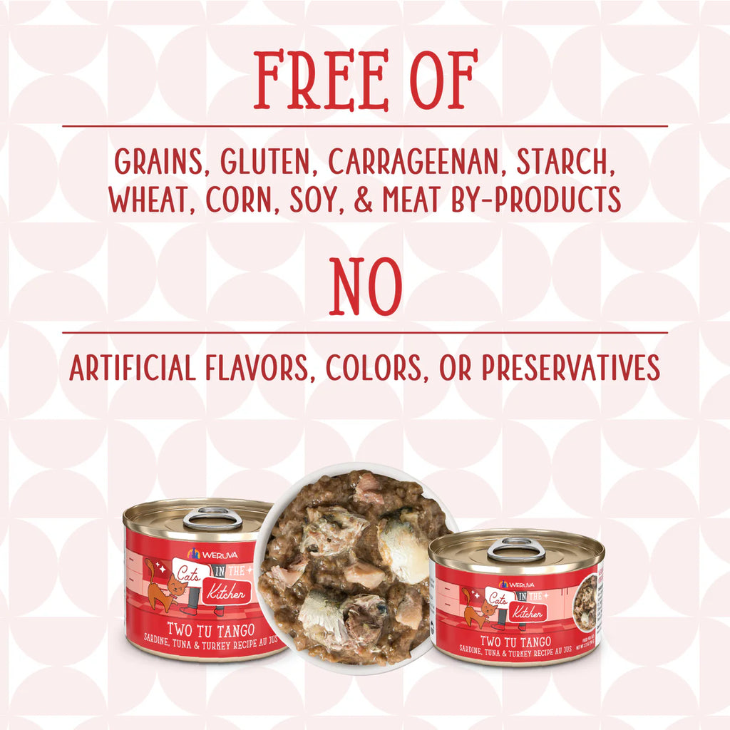 Your cat will feel the rhythm with this flavorful trio! Featuring sardines, wild-caught tuna, and cage-free turkey in a delicious au jus, it’s high in protein, low in carbs, starch-free, and crafted to satisfy your kitchen carnivore’s cravings.