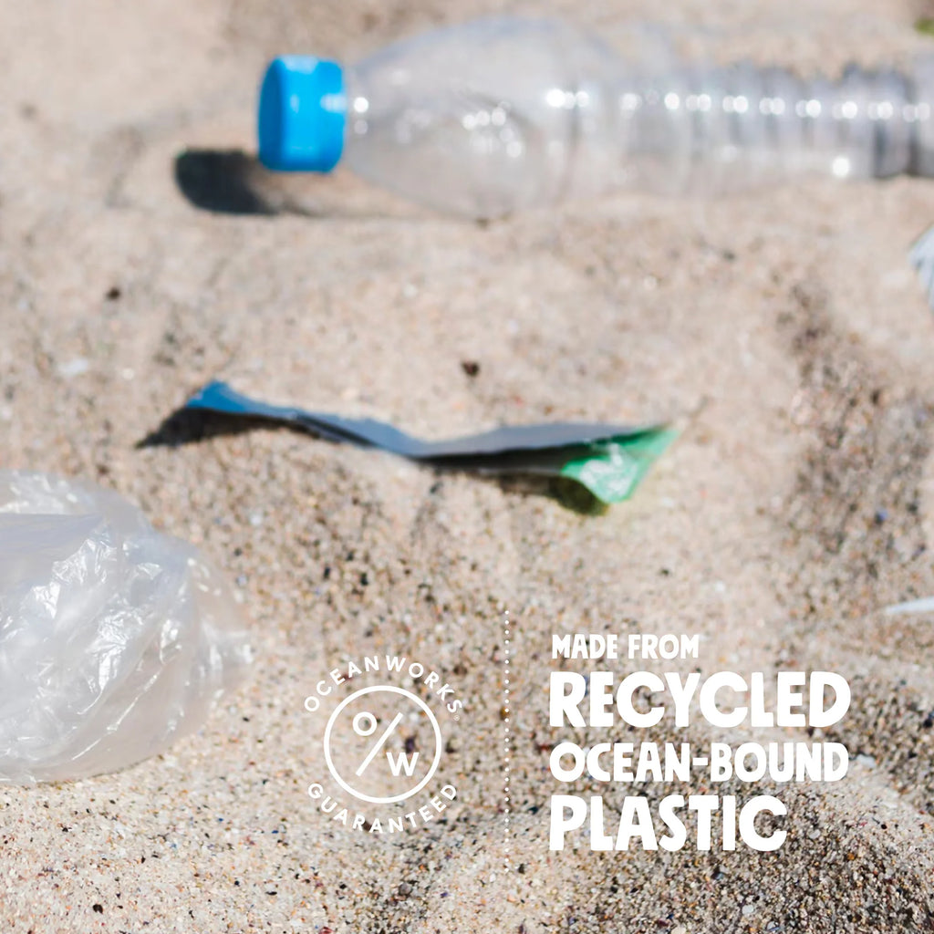- Oceanworks® Guarantee ensures the ocean-bound plastic material meets guidelines for source authenticity, supply chain transparency, and social and environmental compliance