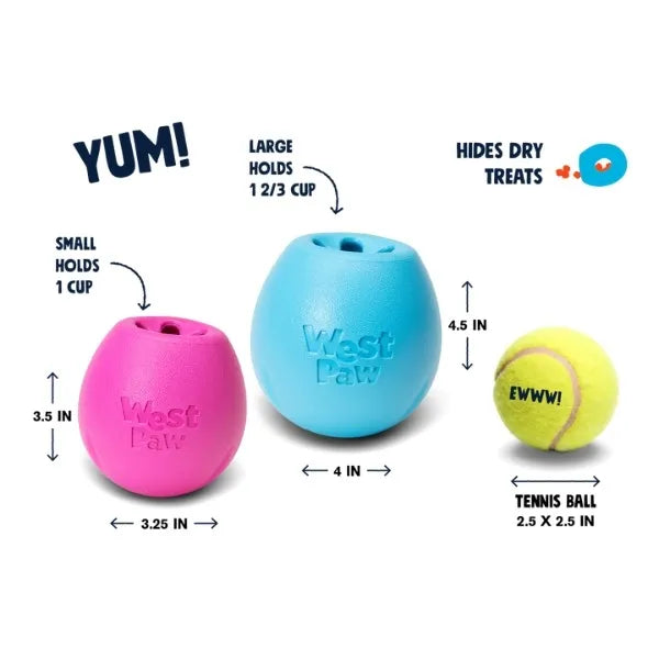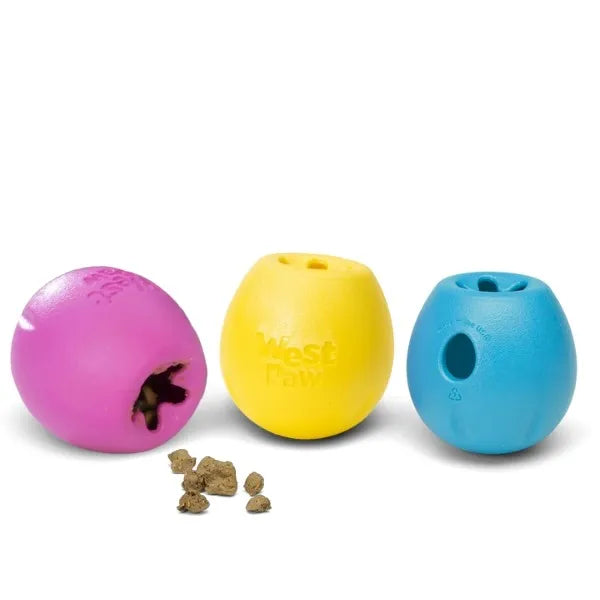 West Paw Design Rumbl Treat Toy is a durable treat toy meant to stand moderate chewers. This toy can fit variou