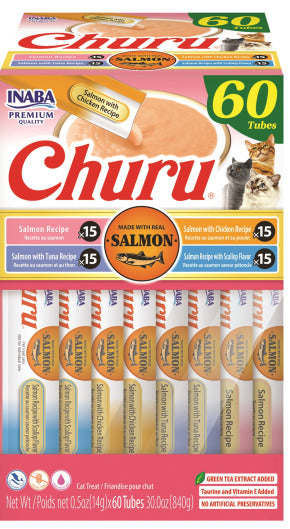 Inaba Cat Churu Purees Variety 60 Pack Salmon, Salmon with Chicken, Salmon with Tuna and Salmon with Scallop (NEW) SALE