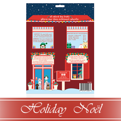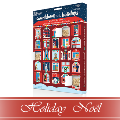 Make this holiday season one to remember with the the Countdown to the Holidays Dog Treat Advent Calendar! This delightful calendar contains 25 dog biscuits, each in its own perforated door and is specially crafted to cater to your dog's taste buds. Every day leading up to Christmas, your pup will have the pleasure of opening a new door to reveal a delicious surprise. Each biscuit-style treat is made with real peanut butter and other high-quality, natural ingredients, free from any harmful additives or preservatives. Treats are hand-baked in the USA in small batches. Filled with 5 oz of delicious treats, the the Countdown to the Holidays Avent Calendar will keep your furry friend entertained for the whole month. And with its festive design, it makes the perfect addition to your holiday decor.