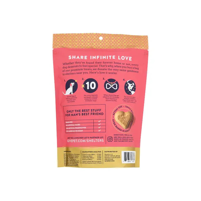 Salmon, Peas, Potato, Chickpeas, Lentils, Tapioca, Tomato Pomace, Canola Oil (Preserved w/ Mixed Tocopherols), Dried Carrots, Dried Sweet Potatoes, Dried Apple, Dried Celery Root, Dried Red Beets, Dried Parsley, Dried Blueberries, Dried Lettuce, Dried Watercress. Guaranteed Analysis: Protein 17%, Fat 8%, Fiber 8.5%, Moisture 12% Calorie Content: 1 treat = 13 kcals