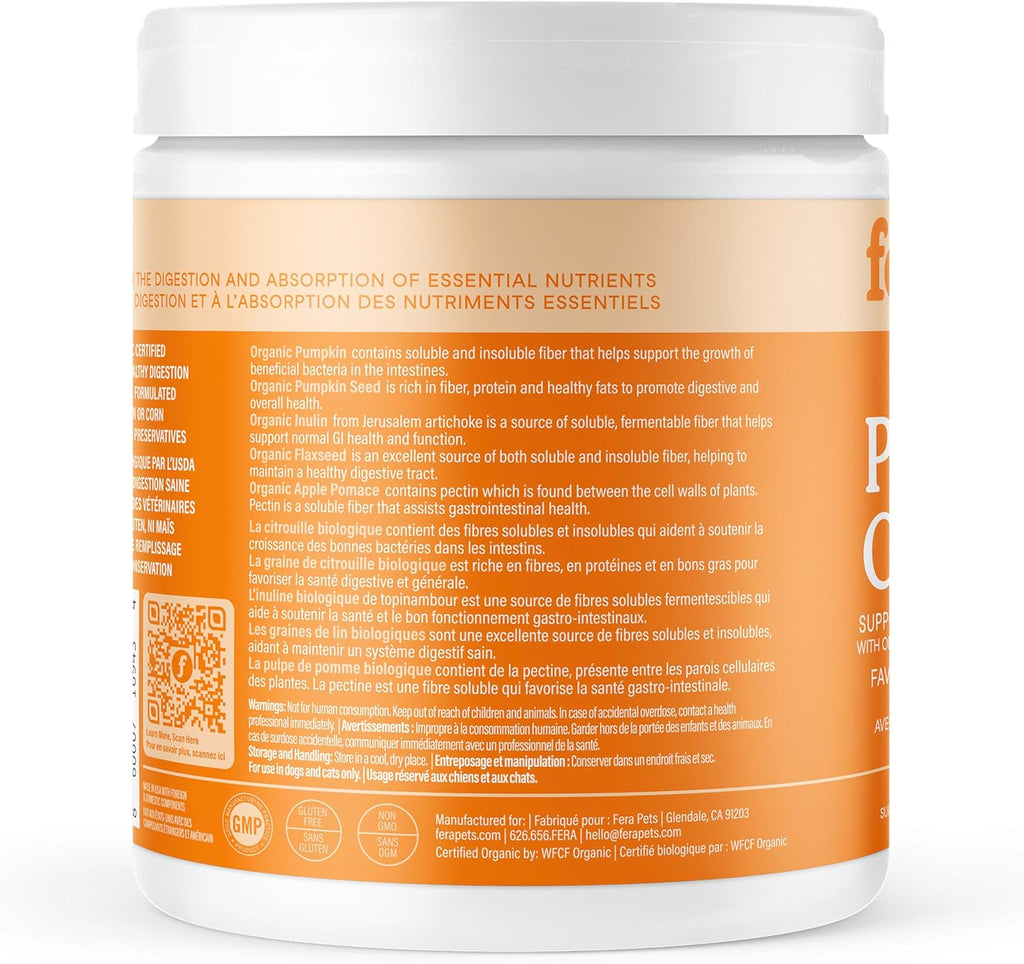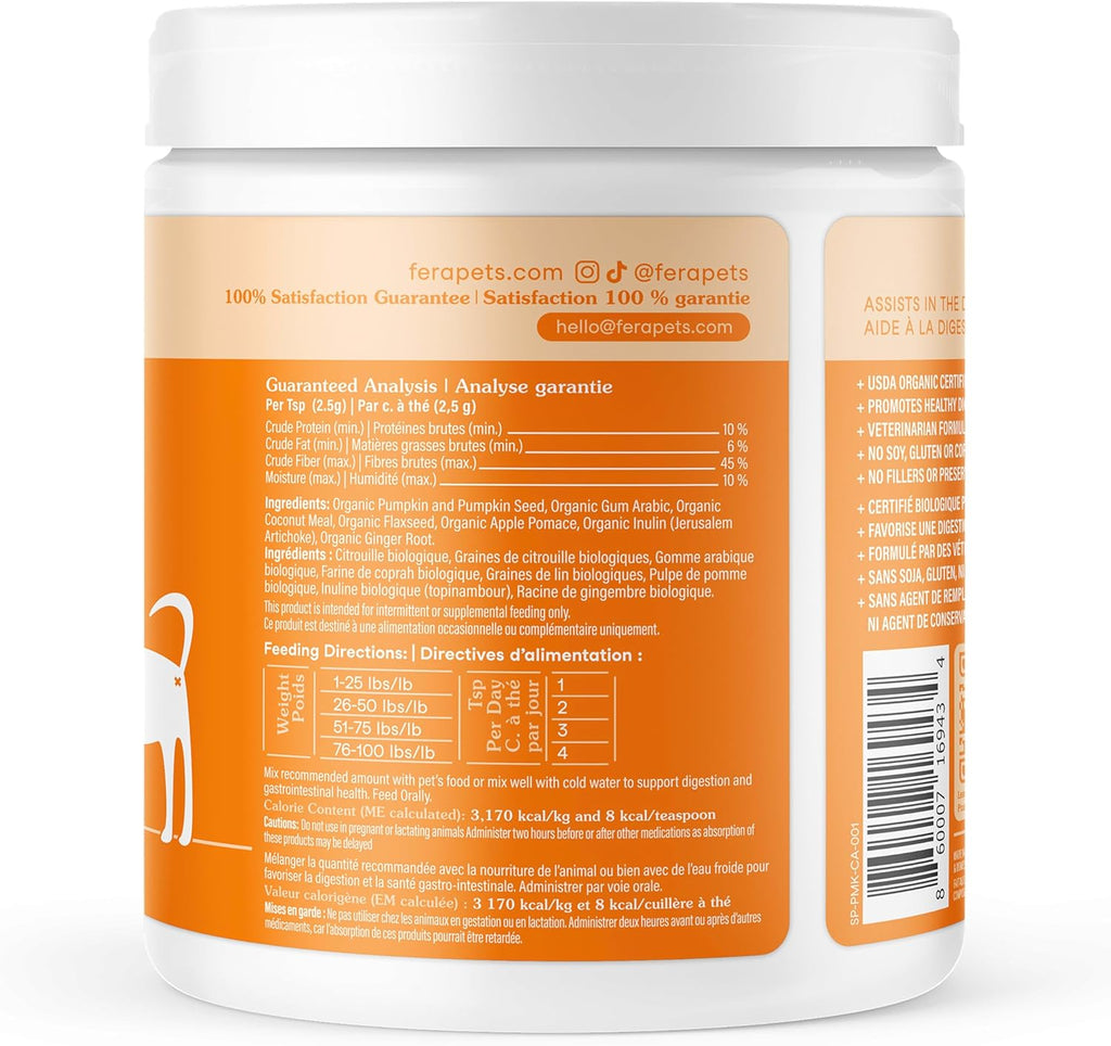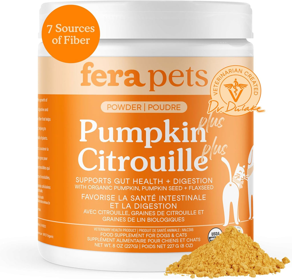 Let’s be real—loose stool ain’t cool! It’s hard on your pet, and hard on us poop scoopers, too. Pumpkin Plus fiber has eight organic ingredients derived from natural high-fiber sources.