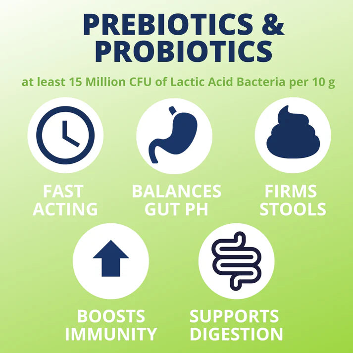 Soy oil, coconut oil, sucrose, corn starch, dried lactobacillus acidophilus fermentation product, dried enterococcus faecium fermentation product, dried lactobacillus casei fermentation product, dried lactobacillus plantarum fermentation product, Inulin, hydrolyzed yeast, dried bacillus subtilis fermentation product, dried bacillus licheniformis fermentation product, d-calcium pantothenate, pyridoxine hydrochloride, riboflavin and vitamin B12 supplement.