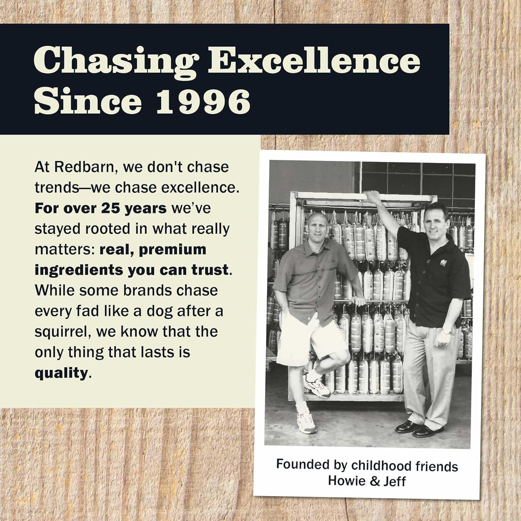 Quality Pet Parents Trust Since 1996: For over 25 years Redbarn has been dedicated to crafting natural dog chews and food with real, honest ingredients that stand the test of time. While trends come and go, we remain committed to quality and integrity—today, tomorrow, always.