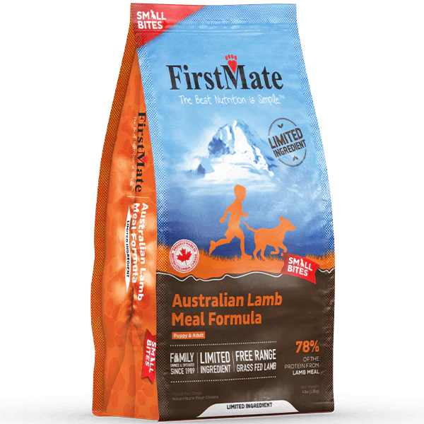 FirstMate Australian Lamb Grain Free Small Bites Dog Food is made with just one animal protein: fresh, whole lamb. This Limited Ingredient Diet is perfect for pets who suffer from allergies or sensitivities to common animal proteins, such as chicken and fish. This ultra premium dog food is also grain free, which is again great for pets who suffer from allergies. This is a well balanced and complete diet for dogs of all ages, from puppy up to senior. It is also easier to digest than some other leading lamb-based formulas.