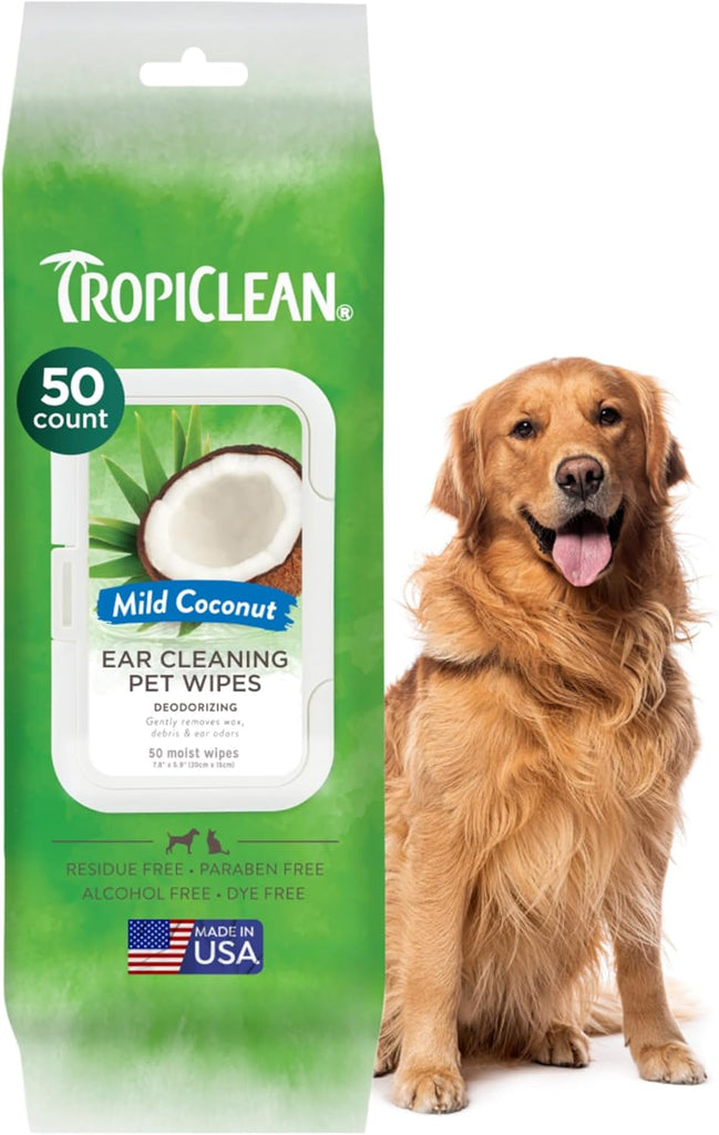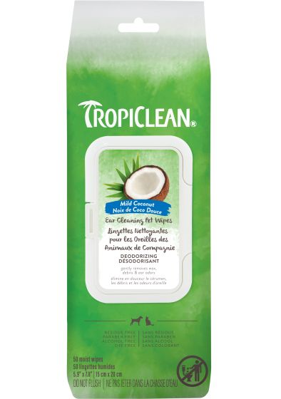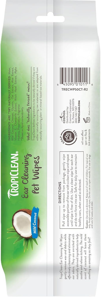 TropiClean Mild Coconut Dog & Cat Ear Cleaning Wipes 50ct