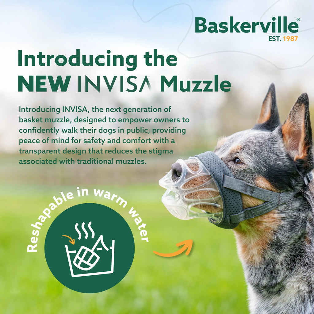 Introducing INVISA, the next generation of basket muzzle, designed to empower owners to confidently walk their dogs in public, providing peace of mind for safety and comfort with a transparent design that reduces the stigma associated with traditional muzzles. Crafted from durable thermoplastic rubber (TPR), INVISA redefines the basket muzzle with advanced features prioritising functionality and canine well-being. At the heart of INVISA's innovation is its transparent basket, designed to reduce the stigma of wearing a muzzle, as it is less obvious compared to other muzzles.