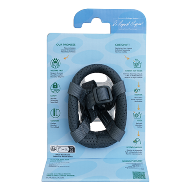 The clear basket design also helps dogs, vets, groomers and owners to perceive facial expressions and subtle signs from the dog. Engineered using computer optimisation techniques, INVISA is lighter and stronger than traditional muzzles, with a 360° padded basket for enhanced comfort. The reflective V-shaped strap ensures a secure yet comfortable fit, eliminating the need for a headstrap.Designed with versatility in mind, INVISA includes a removable guard to prevent unwanted behaviours like food scavenging and licking. INVISA allows dogs to pant, drink, enjoy treats and even vomit, ensuring their comfort and safety.