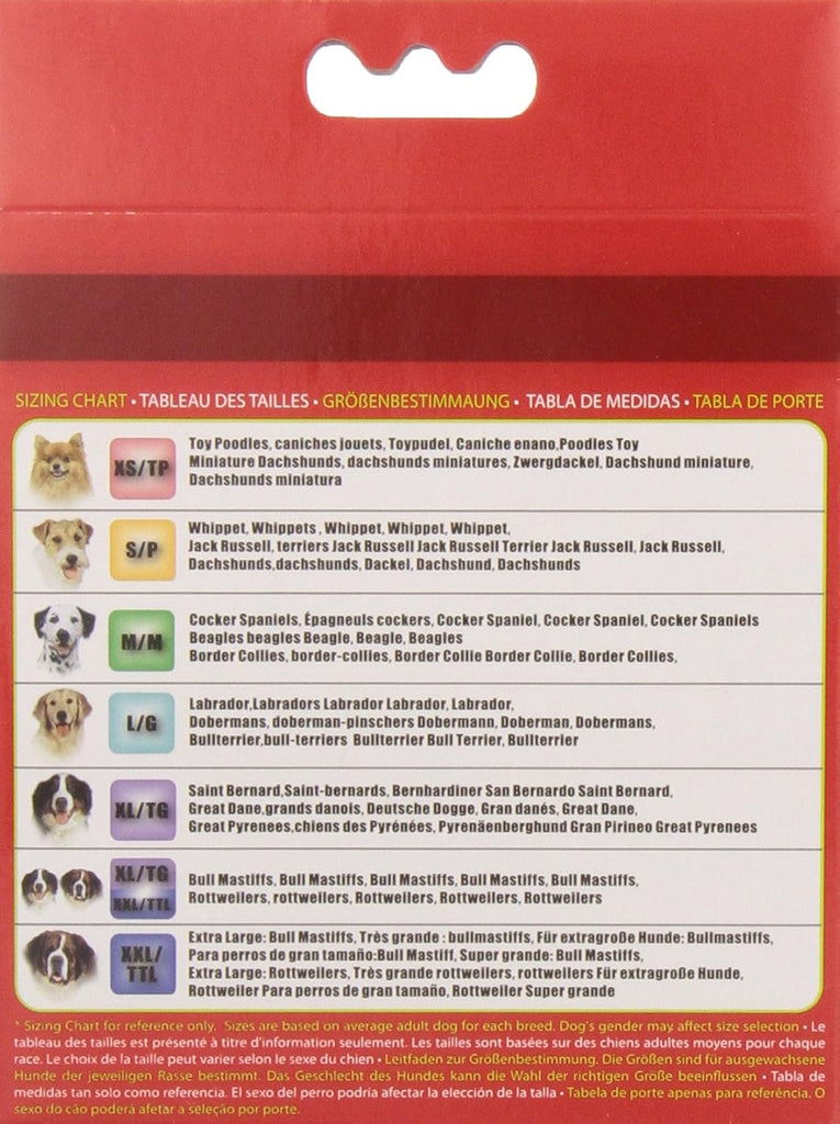 - Sizes are based on average adult dog for each breed. Dog's gender may affect size selection.