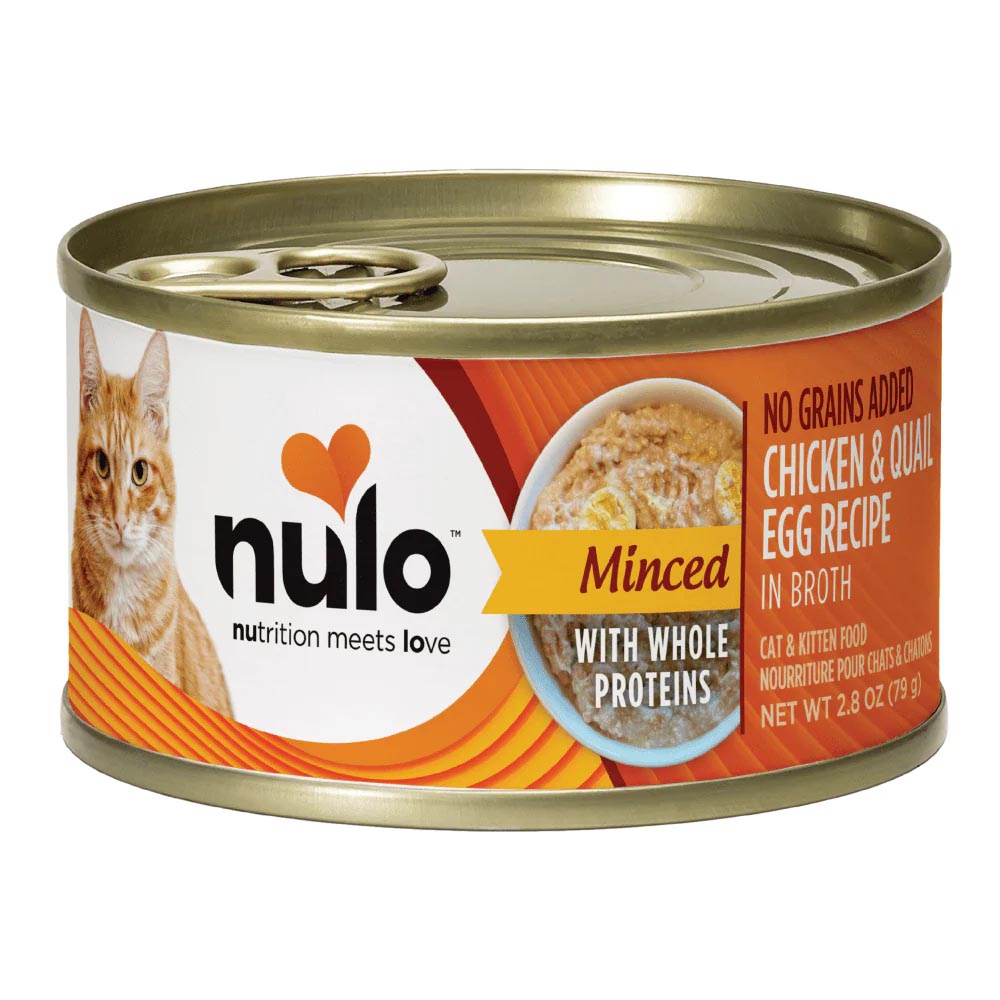 "For the cat that loves a minced texture, Nulo Minced with Whole Proteins is the perfect complete and balanced meal for even your pickiest feline friend. Plus, this grain-free formula contains whole quail eggs for nutrition that you can see and that your cat instinctually craves, all in a tasty broth to help keep them hydrated. Contains NO grains, carrageenan, corn, wheat, soy or artificial preservatives, colors or flavoring.