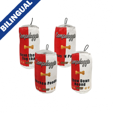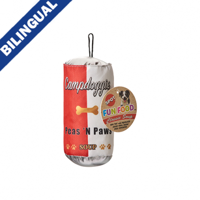 Fun Foods "Classic Soup" is a parody toy of popular Campbell's Soup ®. Made of durable ballistic nylon with crinkle paper inside. Looks like a real can of soup! Also includes a squeaker for even more fun. 0 calories, 100% fun for your pup!