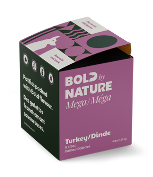 Bold by Nature Mega Turkey Frozen Dog Food 4 lb (8 x 8 oz Patties)