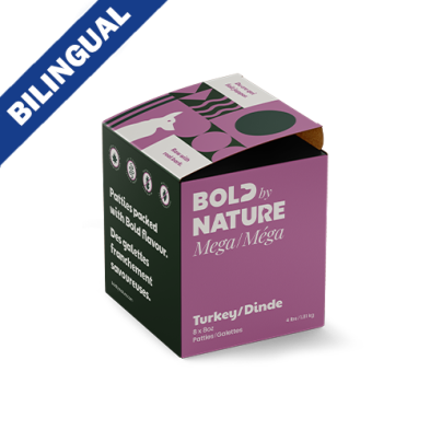 Lean protein. Plenty of flavor. Our Bold by Nature Mega Turkey patties are full of ground turkey meat, ground bone, organ meats and fresh veggies.