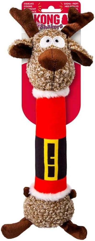 KONG® Holiday Shakers Luvz Reindeer’s long, floppy body satisfies dogs’ shaking instincts—and is also ideal for sliding down chimneys. Low-tone squeaker keeps dogs playing through the holidays and beyond, providing tons of healthy, active play with a pal dressed up for the holidays.
