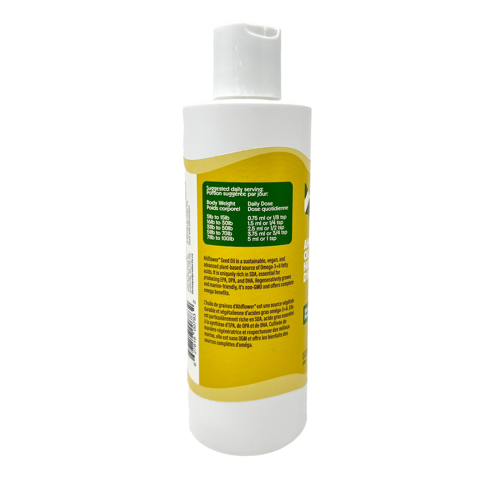 Ahiflower oil is processed and packaged in Canada from a non-GMO crop that is grown in the UK using sustainable and regenerative practices, making it an earth and ocean friendly option.