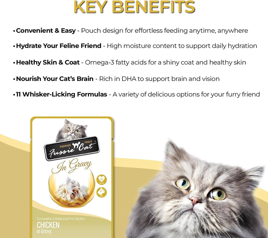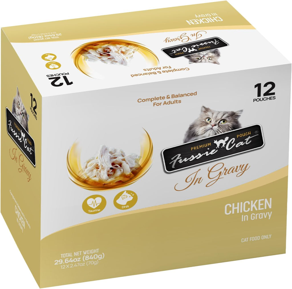 Fussie Cat Premium Pouch Chicken In Gravy is formulated to meet the nutritional levels established by the AAFCO Cat Food Nutrient Profiles for Adult Maintenance
