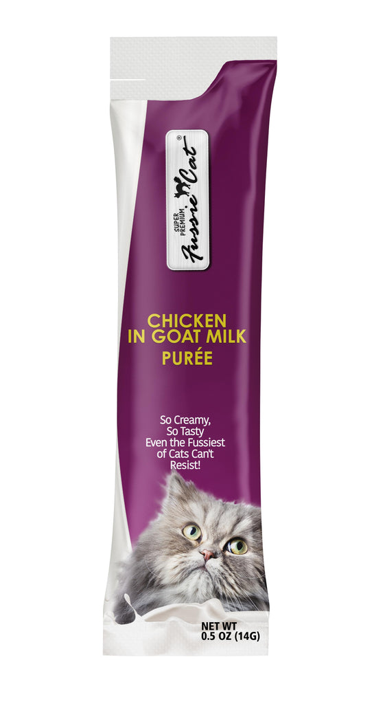 Fussie Cat Goat Milk Purée Treats - Chicken brings together simple, nourishing ingredients in a creamy blend your cat will crave. Real chicken is the star of this purée, offering a flavour that’s both comforting and satisfying—perfect for even the most finicky felines.