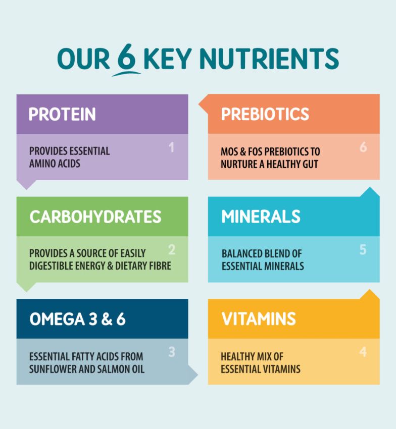 This essential mix of protein, carbohydrate and fibre create an easier digested product for your dog. Omegas 3 and 6 are included in Sunflower and Salmon oils to help maintain healthy skin and promote a healthy coat for your adult dog throughout its life.
