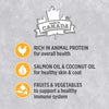 Chicken, chicken broth, chicken liver, rice, green peas, red lentils, sun-cured alfalfa, freeze-dried chicken liver, salmon oil, coconut oil, guar gum, salt, choline chloride, carrageenan, cassia gum, pumpkin, butternut squash, carrots, spinach, broccoli, apples, blueberries, cranberries, pomegranate, juniper berry extract, ginger, fennel, chamomile, peppermint leaf, licorice root, turmeric, zinc proteinate, vitamin E supplement, L-ascorbyl-2-polyphosphate (source of vitamin C), ferrous sulfate, zinc sulfate, iron proteinate, copper proteinate, thiamine mononitrate, sodium selenite, niacin supplement, d-calcium pantothenate, vitamin A supplement, manganese sulfate, riboflavin supplement, manganese proteinate, vitamin D3 supplement, vitamin B12 supplement, pyridoxine hydrochloride, calcium iodate, folic acid.