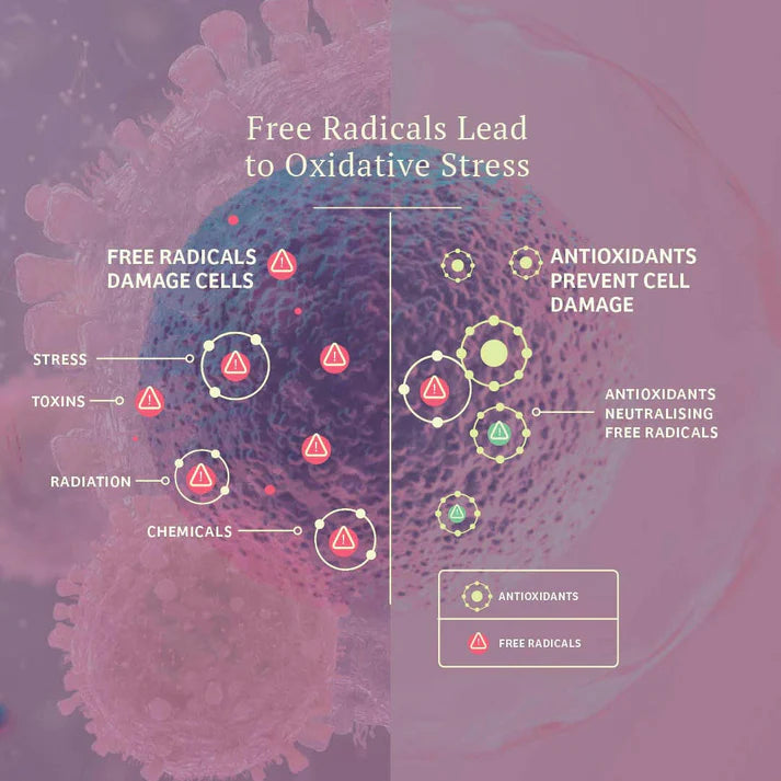 - Helps shield the cells from the harmful effects triggered by processed food, pollution, stress, pesticides, chemicals, second-hand smoke, medications, etc