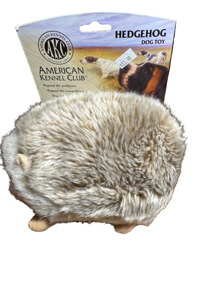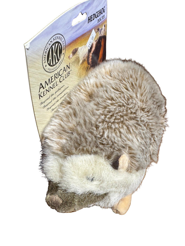 America Kennel Club plush hedgehog dog toy with squeaker. All AKC dog toys are designed for safe, durable, pet play. Strong plush fabric, double stitched with embroidered details and no small parts to swallow.
