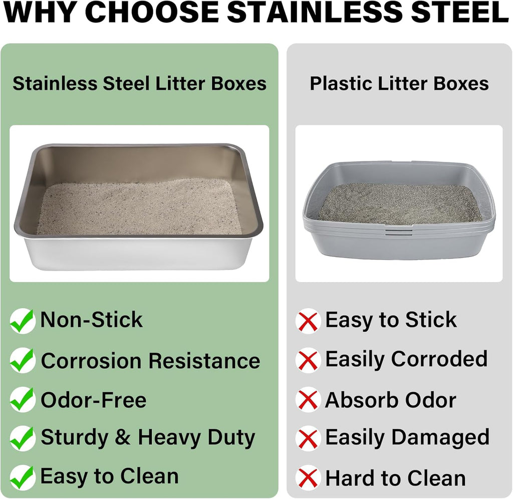 - Stainless steel cat litter box is a perfect litterbox for cats or other small animals like rabbits, which is so easy to clean and so sturdy that could probably accompany your kitty's whole life.