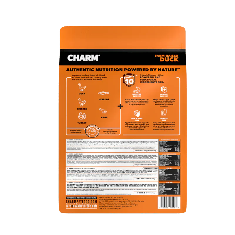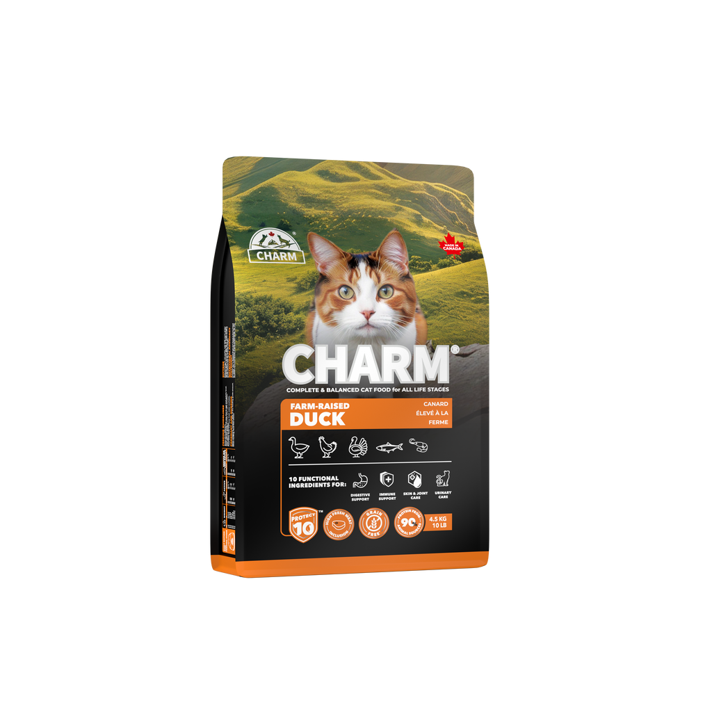 Crafted for nutrition and taste, our Farm-Raised Duck recipe features high inclusions of fresh duck combined with turkey, whole eggs, & seafood. We’ve added nutrient-dense Powergreens and our Protect10™ blend of nature’s most powerful functional ingredients for a vitality boost. Whether your cat likes to stay indoors or go outside to explore, this protein-rich recipe is sure to keep your cat happy and healthy.