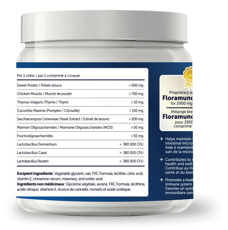 Including Cymbia's Unique Proprietary Active Blend 'Floramuno Boost+' guarantees a thorough strategy for promoting a healthy gut environment, catering to the various requirements of your dog's digestive system.