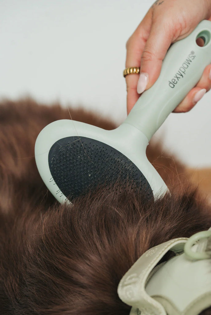 • Dexypaws metal bristle slicker brush is an essential daily grooming tool.
