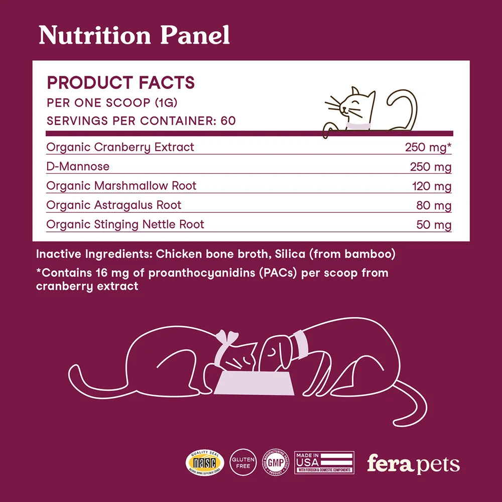We guarantee 16mgs of proanthocyanidins (PACs) which are the active component in cranberries that supports bladder health. Cranberries contain A-type proanthocyanidins, which have antioxidant-like effects, protecting the urinary tract from harmful free radicals. D-mannose is a naturally occurring simple sugar that the body utilizes to help maintain a healthy bladder lining.