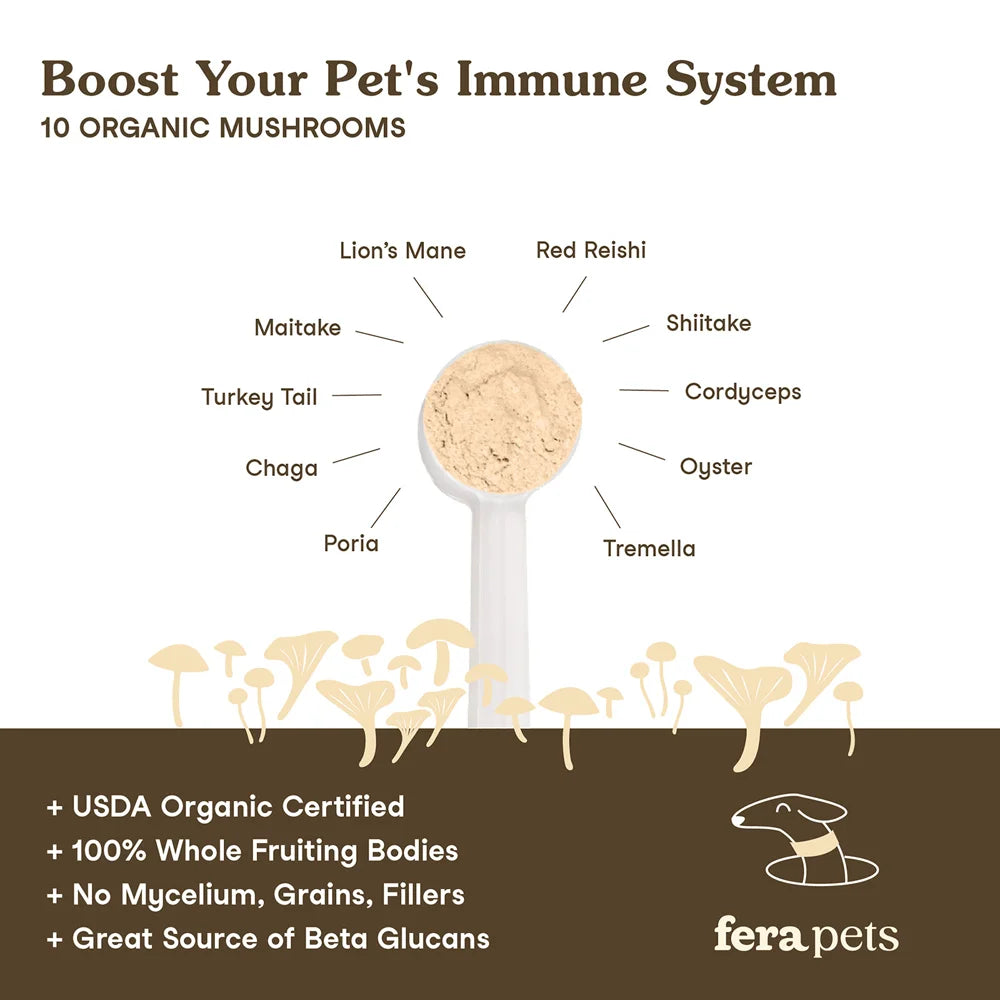 Fera Pets – Organic Mushrooms Immune Support for Dogs & Cats, Powder – 120 Servings (NEW)